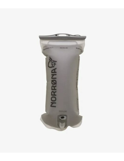 Säiliö on valmistettu läpinäkyvästä, kestävästä TPU-silikonista ja on 100 % BPA- ja PVC-vapaa. Etupuolella on Norrøna-logo.