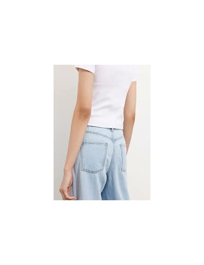 Perustoppi ribbineulosta. Pehmeä ja joustava sekoite luomupuuvillaa ja elastaania, hienosti ribbineulottu. Pyöreä pääntie. Lyhyet hihat. Tasasaumaiset ompelut yksityiskohtina. Tiukka istuvuus.