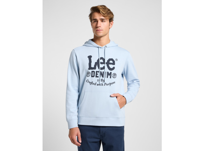 Klassinen huppari ikonisella Leen logolla ja lisäyksityiskohdilla. Mukana kenguruntasku etupuolella.