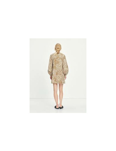 Tässä mekossa on tyylikäs seeprakuvio ja rento istuvuus. Siinä on pyöreä pääntie ja pitkät hihat. Mekko sopii täydellisesti rentoihin tilaisuuksiin.