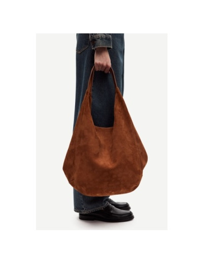 Tilava mokkainen shopper-laukku kahvoilla. Yläosassa magneettikiinnitys. Sisäpuolella vetoketjulliset taskut. Mukana säilytyspussi.