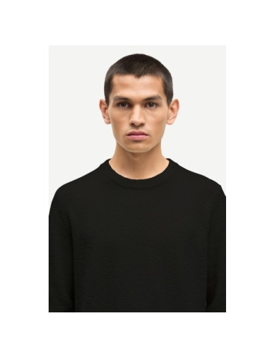 Regular fit -mallinen neule. Resorineulottu kaulus, hihansuut ja helma. Pyöreä pääntie. Päämateriaali on joustava sekoite, joka sisältää luomupuuvillaa ja kierrätettyä puuvillaa.