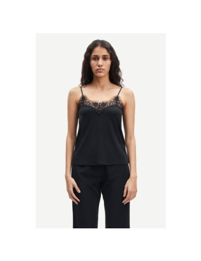 Slip Top on valmistettu elegantista jerseymateriaalista, joka laskeutuu kauniisti. Siinä on säädettävät, sirot olkaimet ja sitä koristaa pitsi sekä etu- että taka-aukossa, mikä tuo asuusi hienostuneen ja tyylikkään yksityiskohdan.
