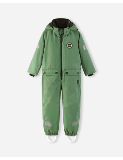 Lasten kevyesti topattu välikausihaalari on saanut innoituksensa Reima 70-luvun tuotteista. Haalarin kaikki saumat on teipattu vedenpitäviksi, ja kierrätyskuitua sisältävä materiaali hylkii vettä ja likaa. Sileä vuori liukuu mukavasti pukiessa. Neppareilla kiinnitetty huppu on turvallinen, sillä se irtoaa helposti jäädessään johonkin kiinni. Vyötäröä voi säätää haalarin sisältä ja kestävät silikoniset jalkalenkit pitävät lahkeet paikoillaan. Läppätaskut ja suuret heijastavat yksityiskohdat viimeistelevät tämän retrohenkisen haalarin tyylin.