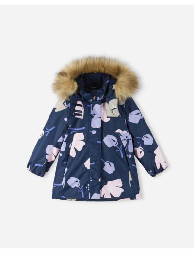 Lasten veden- ja tuulenpitävän Reimatec-toppatakin kaikki saumat on teipattu vedenpitäviksi. Materiaali on myös likaa hylkivää ja hengittävää, joten takki ei hiosta. Muhkea malli istuu kauniisti ja väljyyttä on helppo säädellä selän joustoresorin sekä helman ja hihansuiden säätöjen avulla. Sileä polyesterivuori helpottaa pukemista. Irrotettavaa huppua somistaa irrotettava tekoturkissomiste, ja takissa on paljon heijastavia yksityiskohtia. Tärkeät tavarat, kuten avaimet, saa turvallisesti povitaskuun ja kahteen vetoketjutaskuun. Tämän helppohoitoisen lasten talvitakin saa rumpukuivata.
