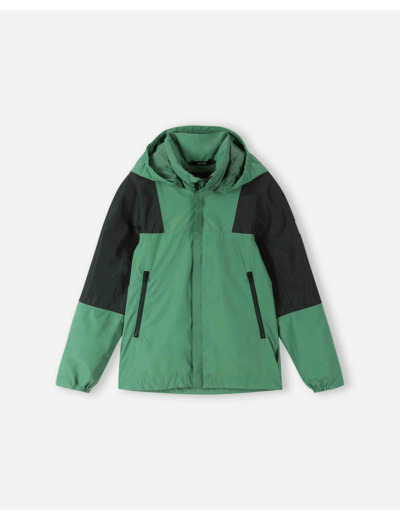 Kevyt, vedenpitävä Reimatec-takki pitää koululaiset kuivina sadesäällä. Hengittävän materiaalin ja verkkovuorin yhdistelmä on mukava myös poutasäällä.
