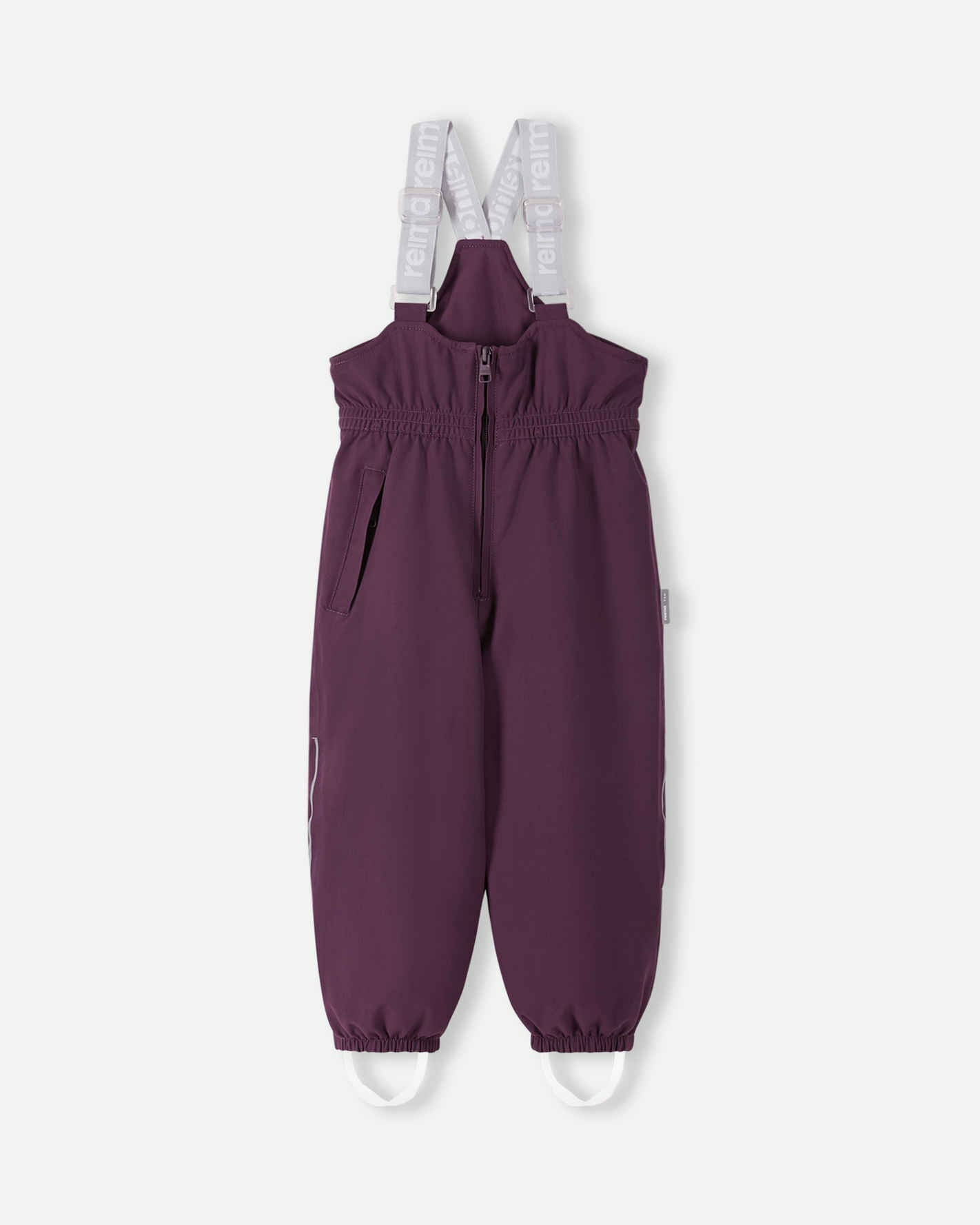 Suositut, vedenpitävät ja erittäin kestävät Reimatec-toppahousut, joissa korkea vyötärö, henkselit ja säädettävät lahkeensuut.