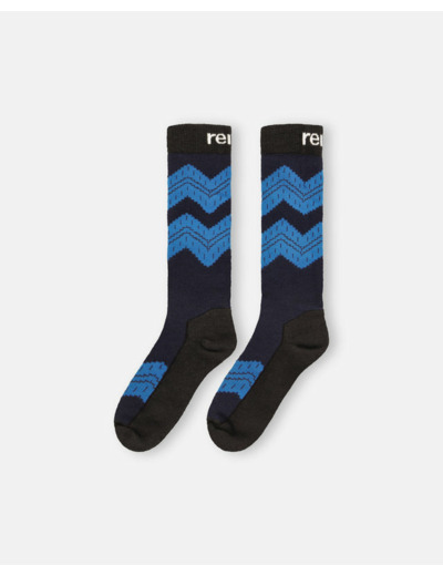 Oiva valinta hiihtopäivään ovat nämä lasten pitkät villasekoitesukat. Niiden pehmeä froteesisus antaa mukavuutta monon sisällä. Nämä sukat ovat erityisen lämpimät, mutta kuivuvat silti nopeasti. Vahvikkeet kantapäässä, jalkapohjassa sekä varpaissa. Hauska ja pitkä kuviollinen varsi!