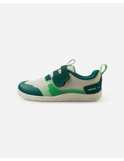 ReimaTec-paljasjalkakenkä Tepastelu on suunniteltu seikkailunhaluisille taaperoille ja vaihteleviin säihin. Kengän minimalistinen lesti on leveä, jotta varpailla olisi tilaa kasvaa suoraan, ja koko kenkä on täysin koroton. Näin lapsen jalan asento on luonnollisempi ja kävelykin sujuu paremmin. Pohja on ohut, vain 4 mm, ja taipuisa, joten se antaa hyvän tuntuman maahan ja aktivoi jalan lihaksia. Kengässä on mukavat, irrotettavat pohjalliset ja helppo tarrakiinnitys. Keveissä Tepastelu-kengissä pikku sankarisi voi liikkua vapaasti, pienestä pisaroinnista välittämättä!