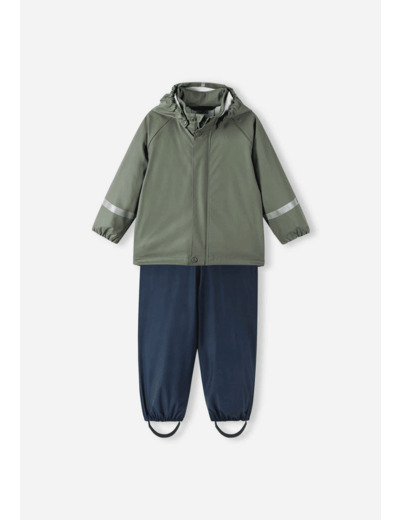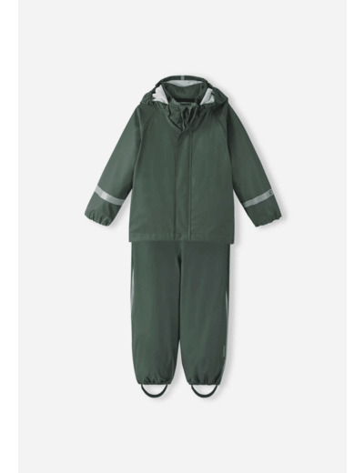 Taaperon Tihku-sadeasu soveltuu sellaisenaan alkusyksyn sadekeleihin ja lämpimän välikerraston kanssa suojaamaan viileilläkin säillä. Vedenpitäviksi hitsatut saumat pitävät huolen, että lapsi pysyy kuivana kaatosateellakin. Irrotettava huppu ei vain suojaa sateelta, vaan on myös turvallinen ulkona leikkiessä. Kurahousut pysyvät hyvin päällä joustavien henkselien ansiosta, jotka myös takaavat hyvän istuvuuden. Irrotettavat jalkalenkit on helppo sujauttaa kumisaappaiden tai vedenpitävien kenkien alle, jotta lahkeensuut pysyvät paikoillaan. Sadeasun materiaali on taipuisaa eikä se sisällä PVC:tä.