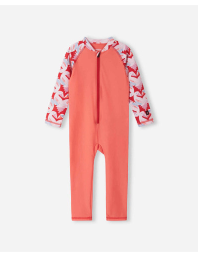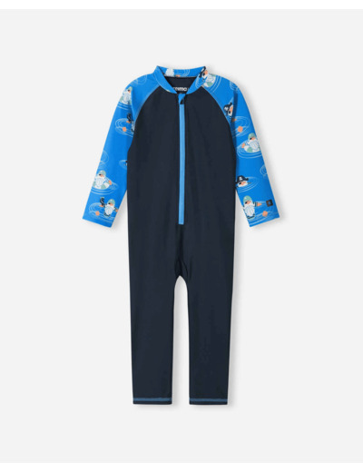 Pitkähihainen uimahaalari suojaa taaperon kehoa auringolta. Pitkä vetoketju helpottaa pukemista.