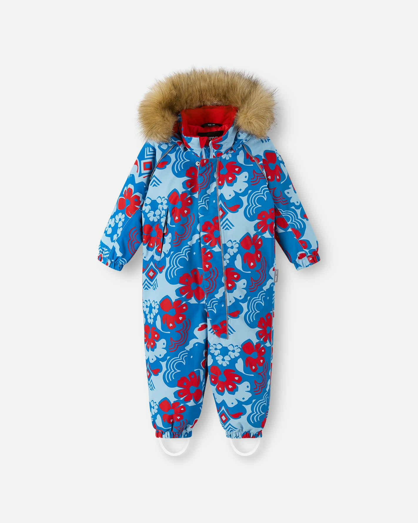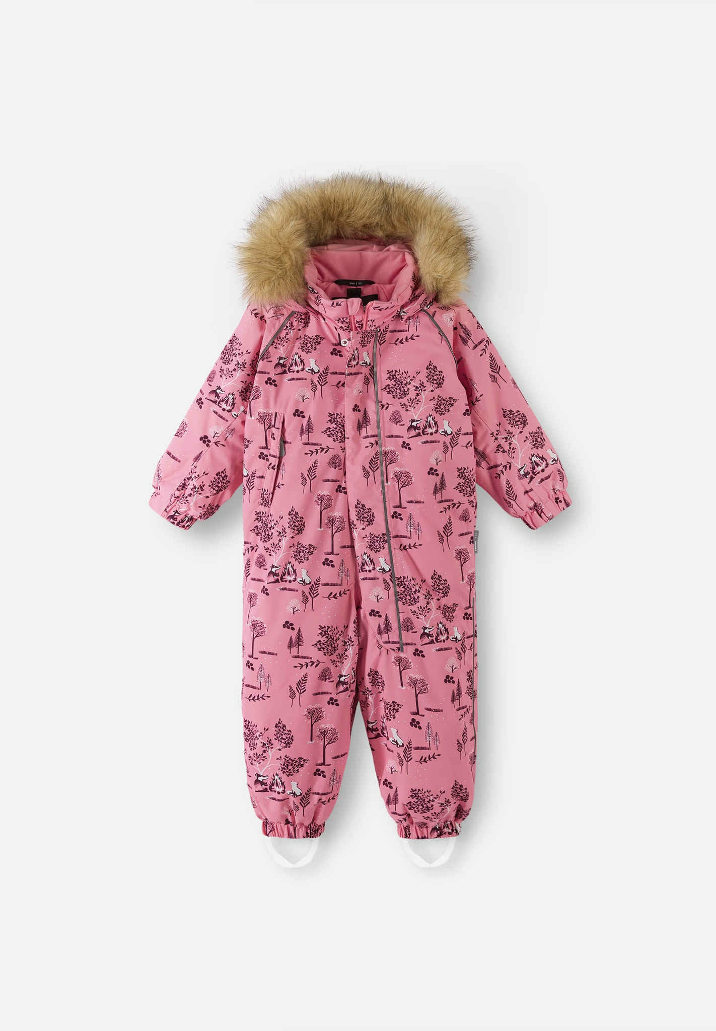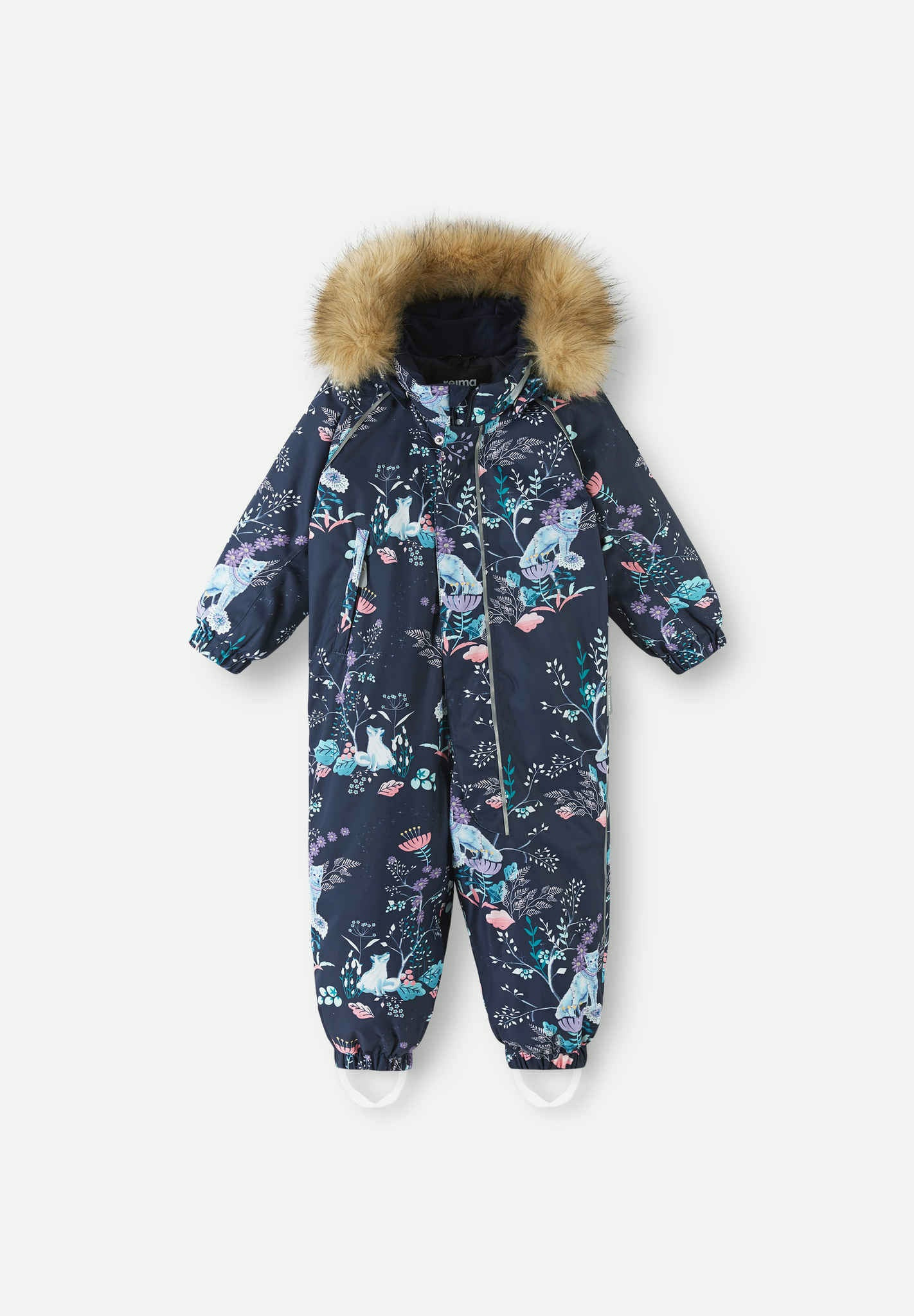 Pienten lasten helppohoitoinen klassikkohaalari sopii kaikenlaiseen talviulkoiluun. Vedenpitävä talvihaalari on valmistettu hengittävästä ja tuulenpitävästä materiaalista, joka hylkii myös likaa. Haalarin kaikki saumat on teipattu vedenpitäviksi ja siinä on lämmike, joka pitää pepun lämpimänä lumella istuessa. Sileä polyesterivuori luistaa mukavasti, mikä helpottaa pukemista ja välikerrosasujen käyttöä. Säädettävä huppu on kiinnitetty neppareilla, joten se on turvallinen ja irtoaa helposti, jos se jää johonkin kiinni. Hupun reunassa on irrotettava tekoturkissomiste. Kestävät silikoniset jalkalenkit pitävät lahkeensuut paikoillaan. Rumpukuivauksen kestävä toppahaalari on oiva valinta niin talviriehaan kuin kaupunkikävelyyn!