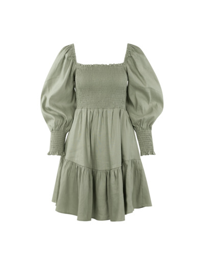 Milagros mekko. Pitkät puhvihihat. / 55% Pellava, 42% Viskoosi, 3% Elastaani. Vuori 100% Viskoosi.