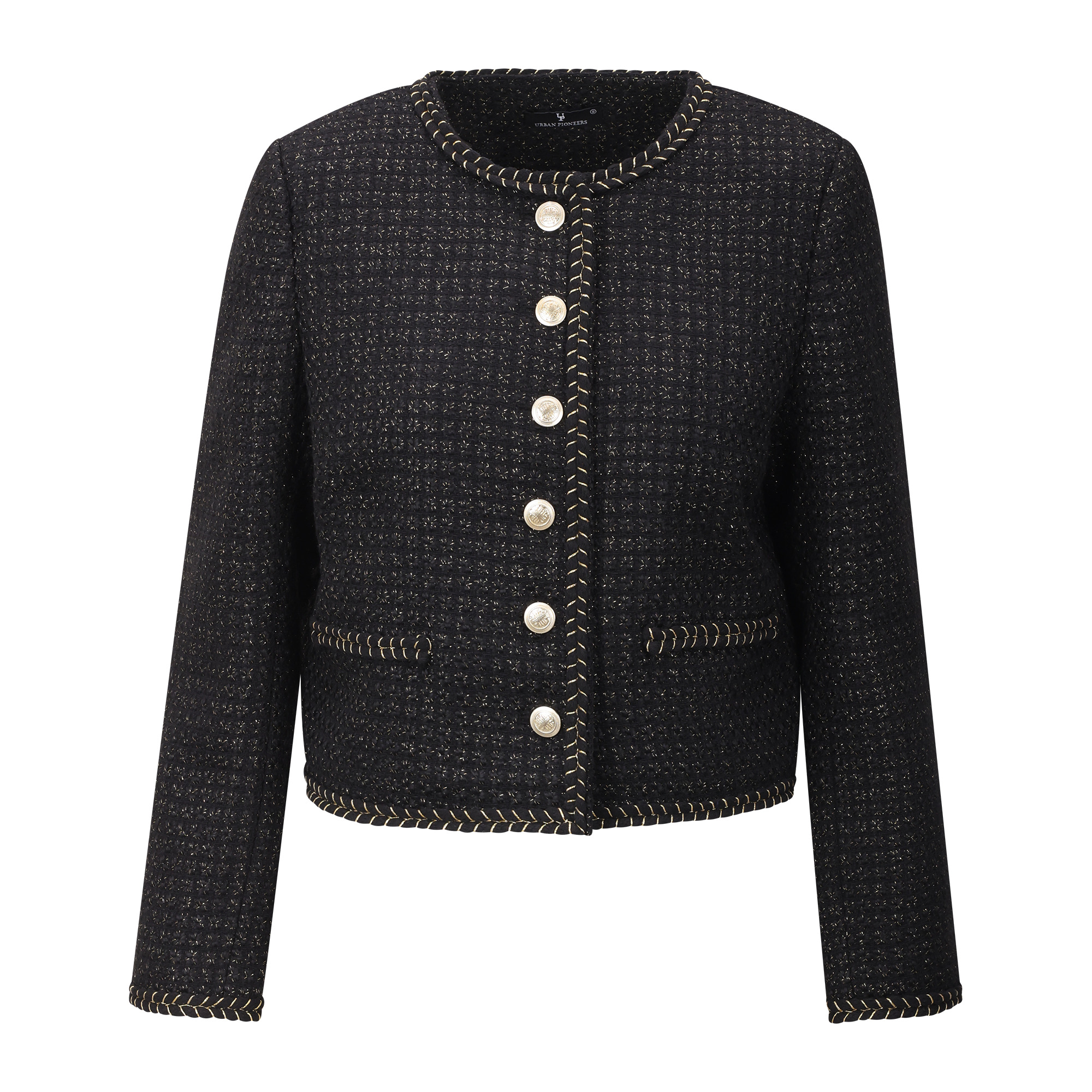 Urban Pioneers Vilda - jakku. Ylellinen bouclé jakku kullanvärisillä UP-logonapeilla. Lyhyt malli.