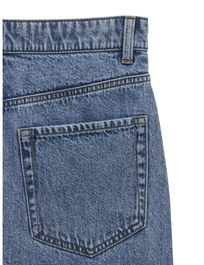 Mom fit -malli, korkea vyötärö, suora lahje. Suljenta napilla ja vetoketjulla. Taskut takana, edessä ja kolikkotasku.