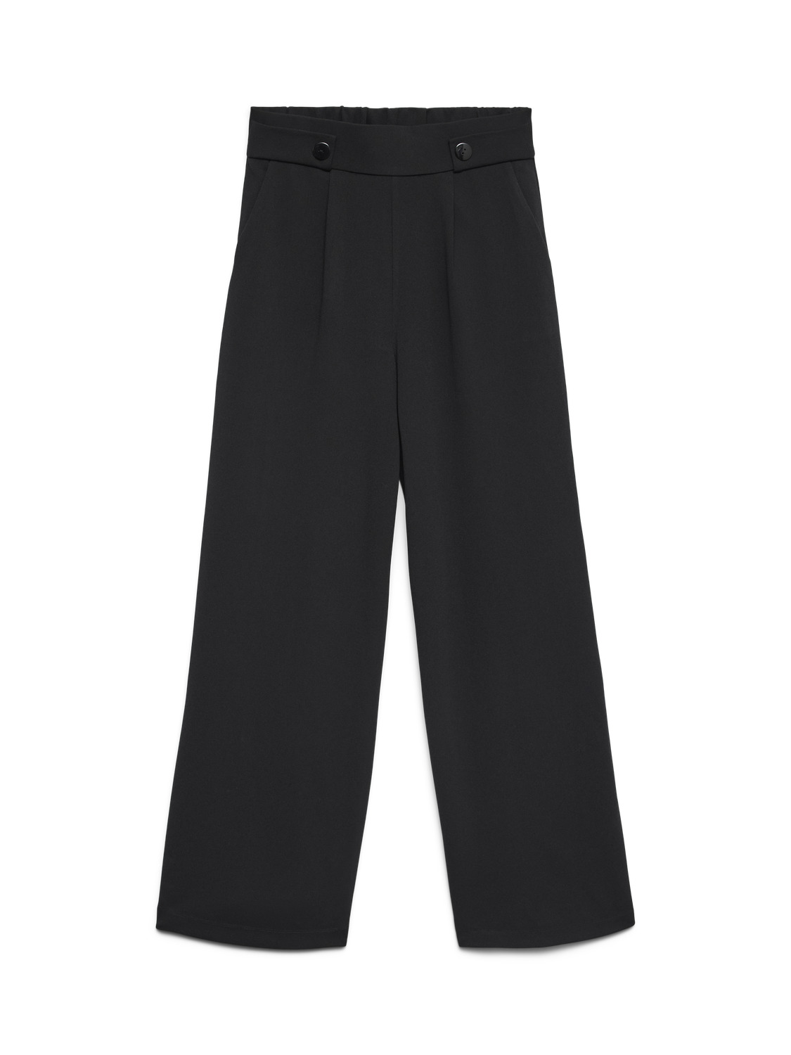 Mid waist -malli, loose fit -leikkaus, takana joustava vyötärönauha, nappidetalji edessä. Valmistaja: Vero Moda.
