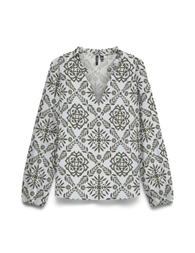 Paita on valmistettu miellyttävästä materiaalista, jossa toistuva printti luo modernin ja kiinnostavan ilmeen. Yhdistä se shacketin, mom-farkkujen ja rouheiden nilkkureiden kanssa luodaksesi ajattoman ja trendikkään kokonaisuuden, joka kestää katseet.