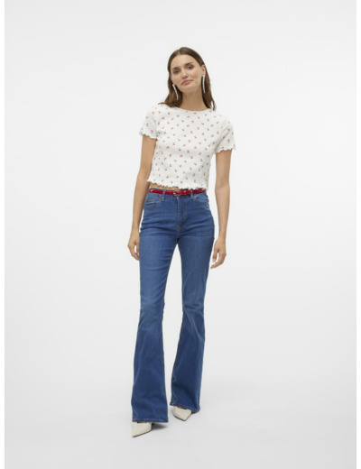 Tuotteen tekniset tiedot: Regular fit -istuvuus, O-kaula-aukko, lyhyet hihat, hihansuissa röyhelöyksityiskohdat, koko pinta toistuvalla printillä.