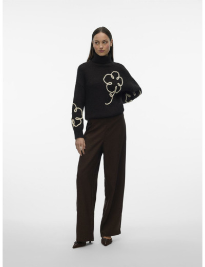 Tuotteen tekniset tiedot: neulepusero, rokkikaulus, pitkät hihat laskostetuilla olkapäillä, ribbineulotut hihansuut, kirjailudetalji, regular fit -istuvuus.