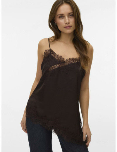 Tuotteen tekniset tiedot: Toppi on hihaton, siinä on V-kaula-aukko ja säädettävät olkaimet. Leikkaus on regular fit, ja pitsidetaljit tuovat viimeistellyn ilmeen.