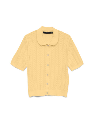 Standard fit -leikkaus tarjoaa mukavan istuvuuden ilman kiristystä, ja napillinen suljenta lisää tyylikästä yksityiskohtaa. Tämä neule on suunniteltu tuomaan ripaus hienostuneisuutta arkipukeutumiseesi helposti ja vaivattomasti.