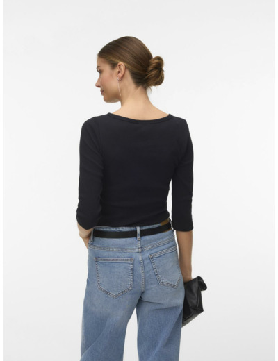 T-paita on valmistettu laadukkaasta materiaalista, jossa on veneenmuotoinen kaula-aukko ja 3/4-pituiset hihat. Tiukka istuvuus takaa modernin siluetin ja monipuolisen käytettävyyden.
