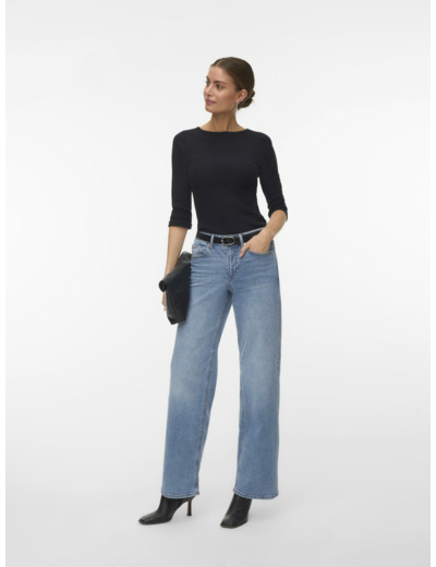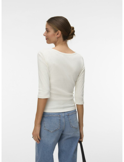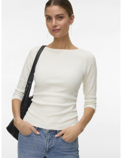 Tämä Vero Modan t-paita on suunniteltu korostamaan vartalon linjoja tiukan istuvuuden ansiosta. Veneenmuotoinen kaula-aukko ja 3/4-hihat tekevät siitä monikäyttöisen ja tyylikkään valinnan niin työpäivään kuin vapaa-aikaan. Yhdistä se shacketin, mom-farkkujen ja rouheiden nilkkureiden kanssa luodaksesi rento mutta huoliteltu kokonaisuus.