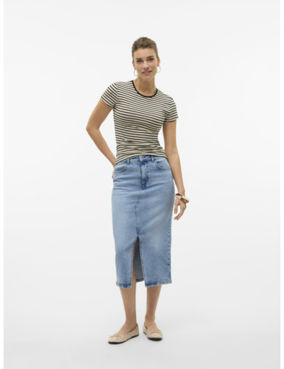 Denim-mekko, joka tuo ajattoman tyylin vaatekaappiisi. Vero Modan VMNATALIE HR MIDI DNM SKIRT on täydellinen yhdistelmä käytännöllisyyttä ja trendikkyyttä.